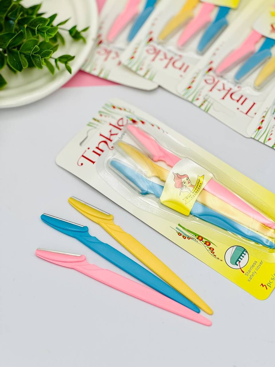 تیغ ابرو تینکل 3 عددی برای اصلاح ایمن صورت و ابرو به کار می رود. این محصول بسیار کوچک است و در کیف آرایش شما به راحتی جا میشود و برای تمیز کردن ابرو و صورت افراد مبتدی بسیار مناسب است. این محصول ضد حساسیت است و کاملا خوش دست است.