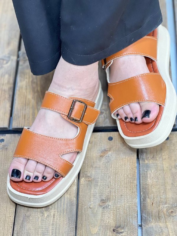صندل دو بند پهن تک سگک مستطیل لژدار