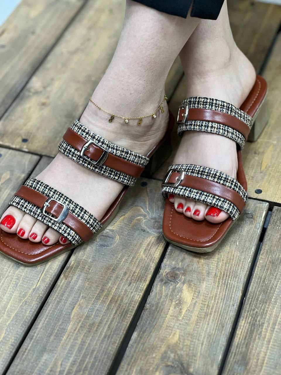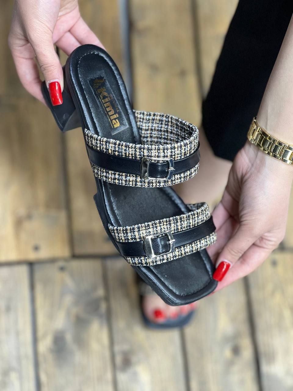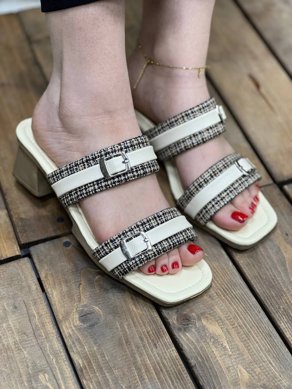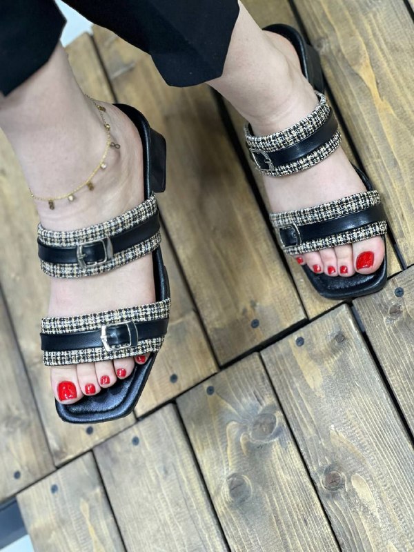 صندل دو بند سگک کنفی پاشنه pvc مدلی ساده و جذاب با پاشنه است که هم استایل شما را جذاب میکند و هم ساده و راحت است که با تمامی استایلهای شما سازگار است. این صندل دارای رنگهای کرم، مشکی و عسلی در سایزهای 37 تا 40 است.
