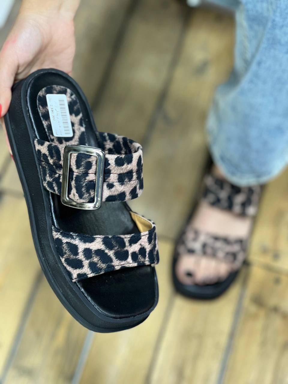 صندل بند پهن پلنگی سگک لژ دار یکی دیگر از مدلهای جذاب صندل برنس است که با طراحی خاص خود برای خاص پسندان طراحی شده است. این مدل صندل دارای لژ استاندارد بسیار راحت است و با بلندتر کردن قد شما استایلتان را نیز زیباتر میکند.